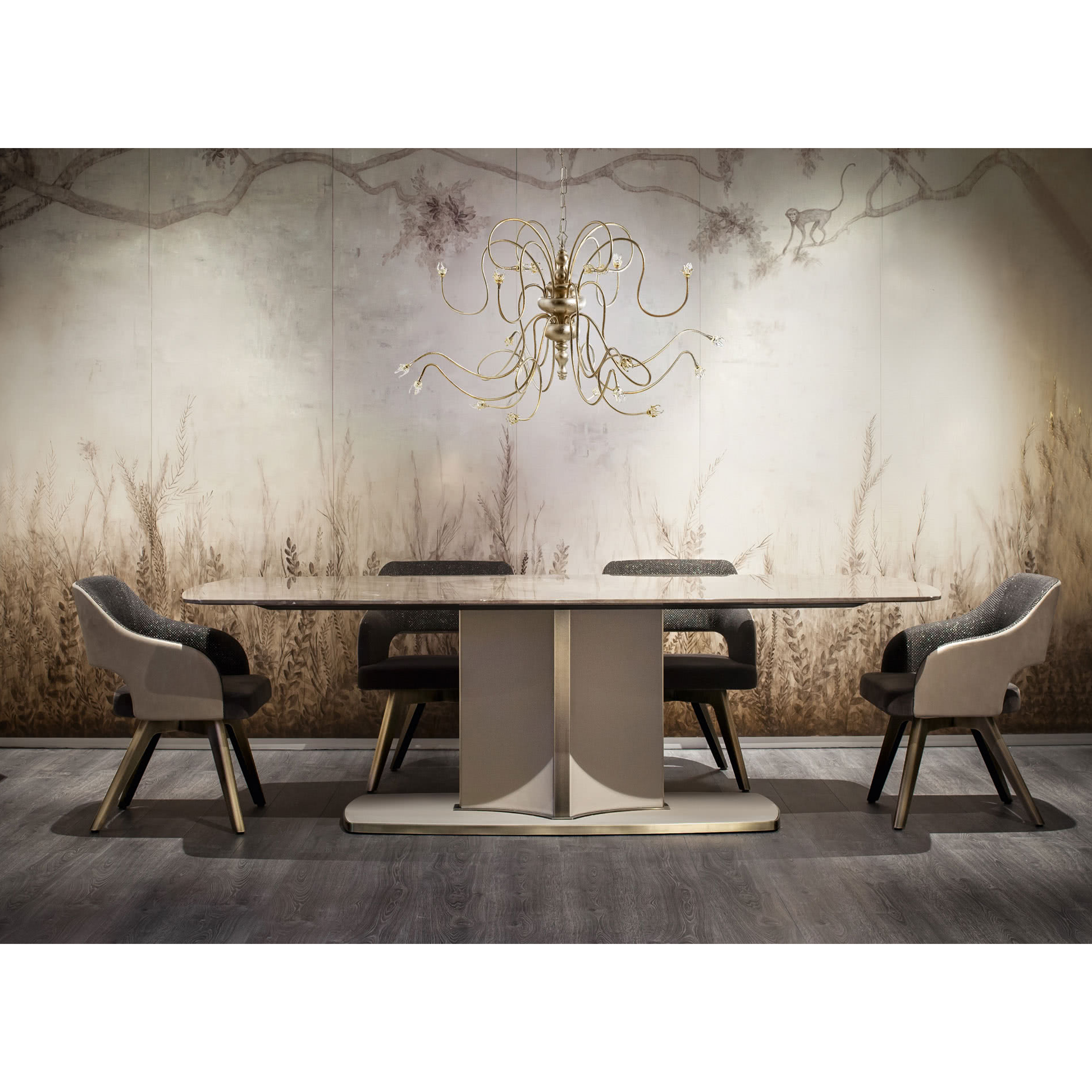 Sofa Oasi là dòng sofa module cao cấp với nhiều kiểu dáng linh hoạt. Bạn có thể sắp xếp thành sofa góc, ghế chaise longue, ottoman hay island tròn, phù hợp cho mọi không gian phòng khách. Khung sofa làm từ gỗ beech và poplar chắc chắn, kết hợp dây đai đàn hồi chống biến dạng. Đệm ngồi phủ polyurethane mật độ cao nhiều lớp, bề mặt đàn hồi tốt, mang lại sự êm ái lâu dài. Đệm và gối tựa được làm từ lông vũ và sợi tổng hợp, mềm mại nhưng không xẹp lún. Sofa còn nổi bật với chi tiết kim loại mạ đồng cắt laser, tạo ánh sáng phản chiếu sang trọng.