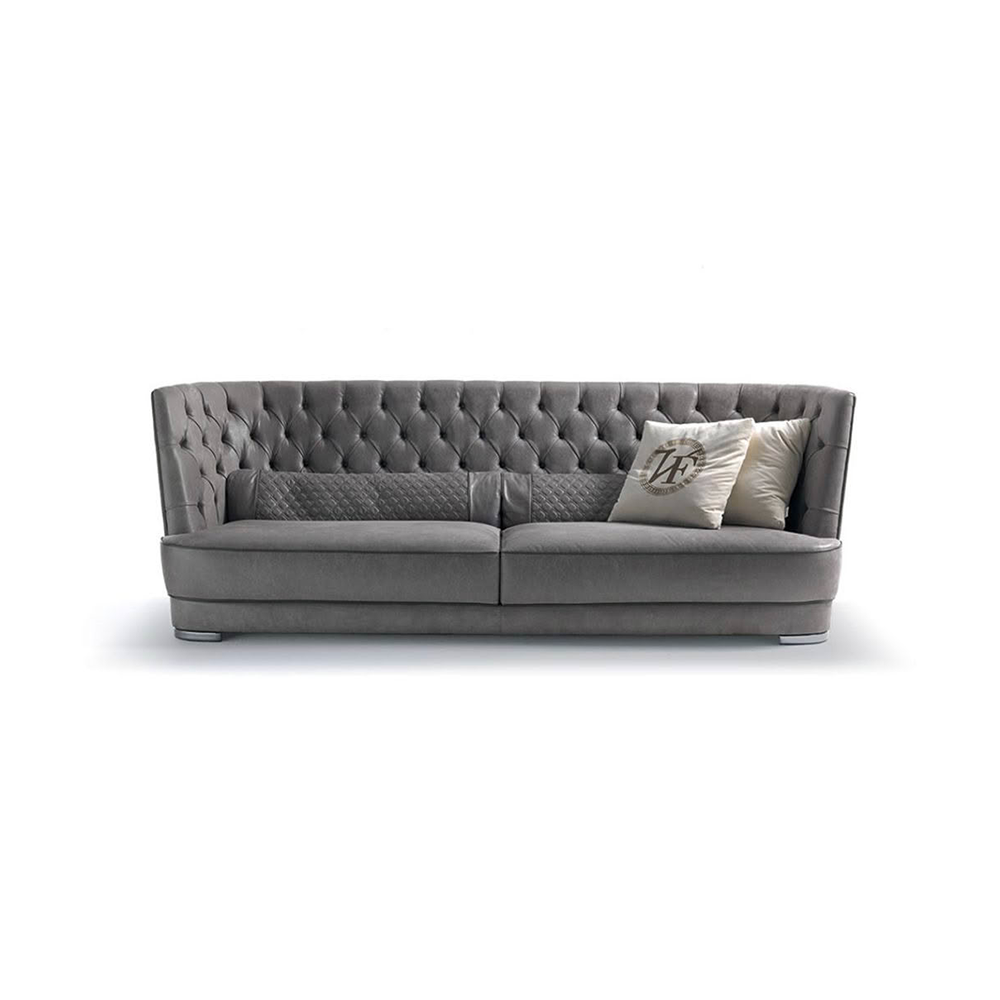 Sofa Greppi High Capitonné là biểu tượng của nội thất cao cấp và phong cách sống thượng lưu. Tựa lưng cao 88 cm được hoàn thiện thủ công với kỹ thuật capitonné tinh xảo, tạo nên điểm nhấn sang trọng đầy cuốn hút. Thiết kế tay vịn và tựa lưng cùng độ cao mang lại hiệu ứng hình khối cân đối, tôn lên vẻ đẹp chuẩn mực của phòng khách.